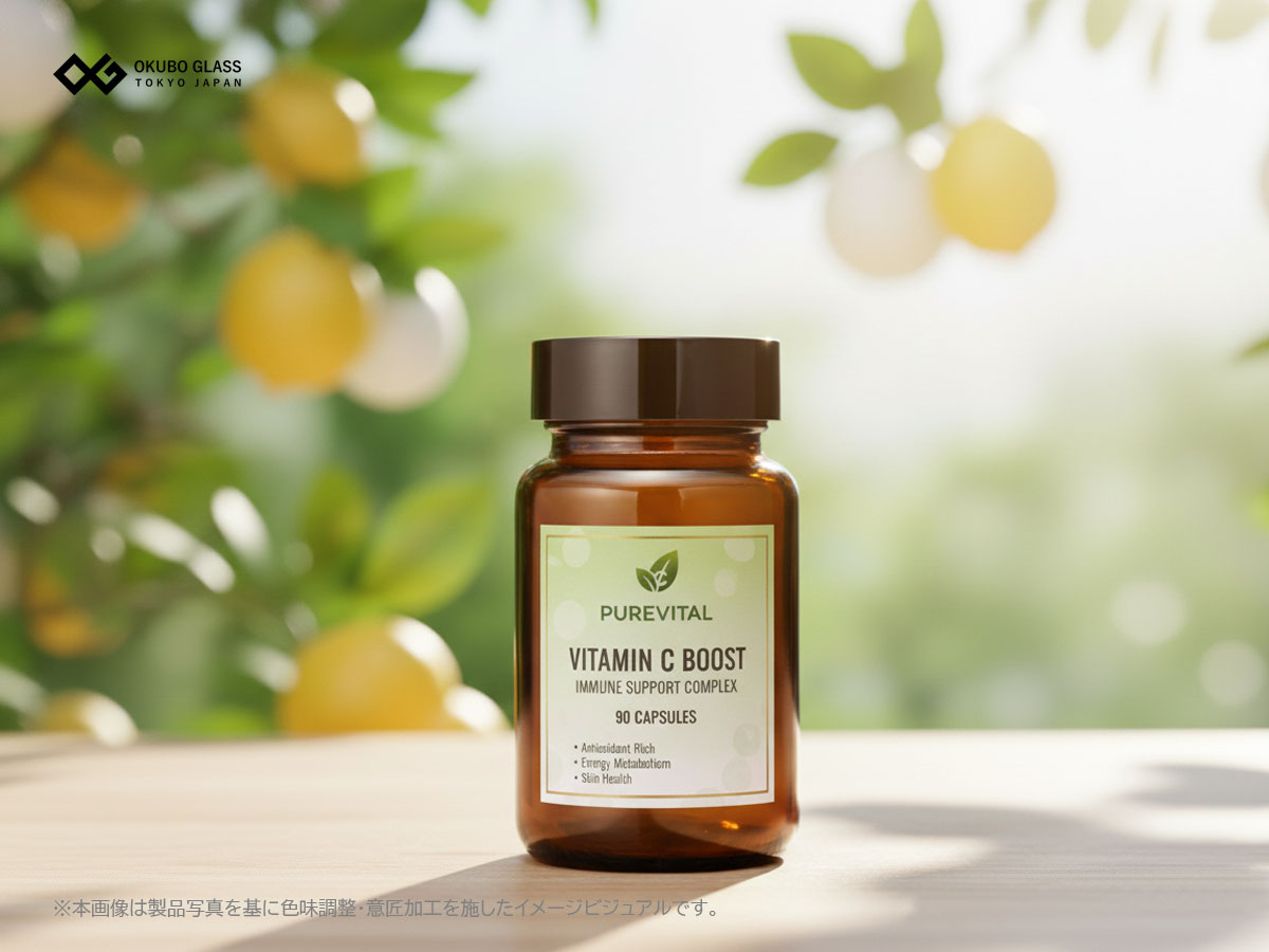 | 備考 | びんは1号~13号、13号以上の大きいサイズ、キャップは多彩なご用意があります。洗浄やフロスト加工、印刷加工も対応いたします。 | ||